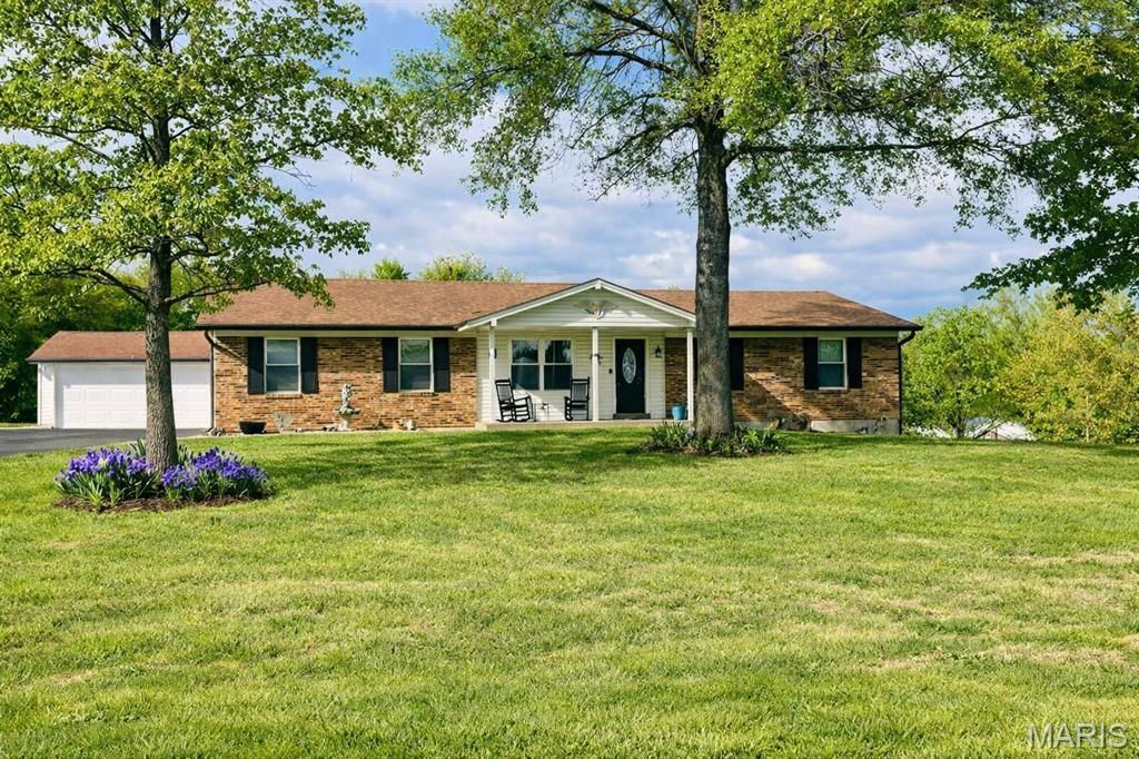 Motivated Seller - Beautifully updated ranch home on 3 private acres in a quiet, established neighborhood in Moscow Mills. This home offers a functional main-level layout, a walkout basement, and both attached and detached garage spaces. Convenient access to Highway 61, Troy, and Wentzville. The main level features new hardwood flooring, fresh paint, updated lighting, and two separate living areas, including a living room with a gas fireplace. The kitchen includes tile flooring, new appliances, quartz countertops, new sinks and faucets, and a tile backsplash. A screened-in porch and adjoining deck overlook the private acreage. The main level includes 3 bedrooms and 2 full bathrooms, all updated. The walkout basement adds 2 additional bedrooms 1 full bathroom, and a partially finished area with potential for a recreation room, office, gym, or play space. The property includes a partially fenced backyard and a raised garden bed. Additional updates include new ceiling fans, window treatments, hot water heater, garbage disposal, fixtures, front door, and wood staircase.