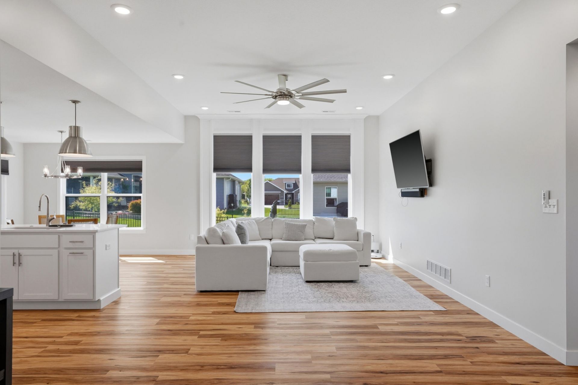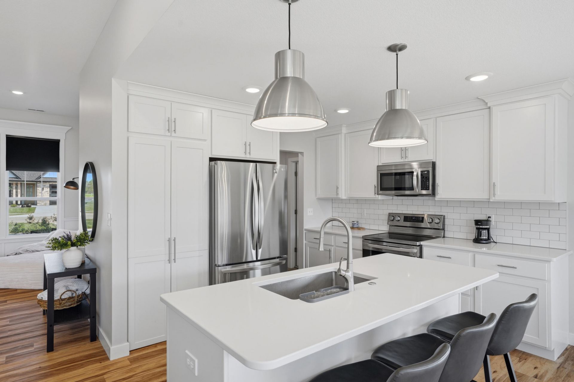 Come see this beautiful white brick home with a timber frame entrance! The amazing features in this home are an open concept floor plan, dining room, split bedroom layout, large kitchen island with quartz countertops and a hidden walk-in pantry. The oversized windows and tall ceilings in the great room allow for plenty of natural light. Other added bonuses include all stainless-steel appliances and upgraded trim work throughout. Fenced back yard and upgraded power blinds thought out. The home also has high speed fiber internet and is walking distance to Hallsville Schools.