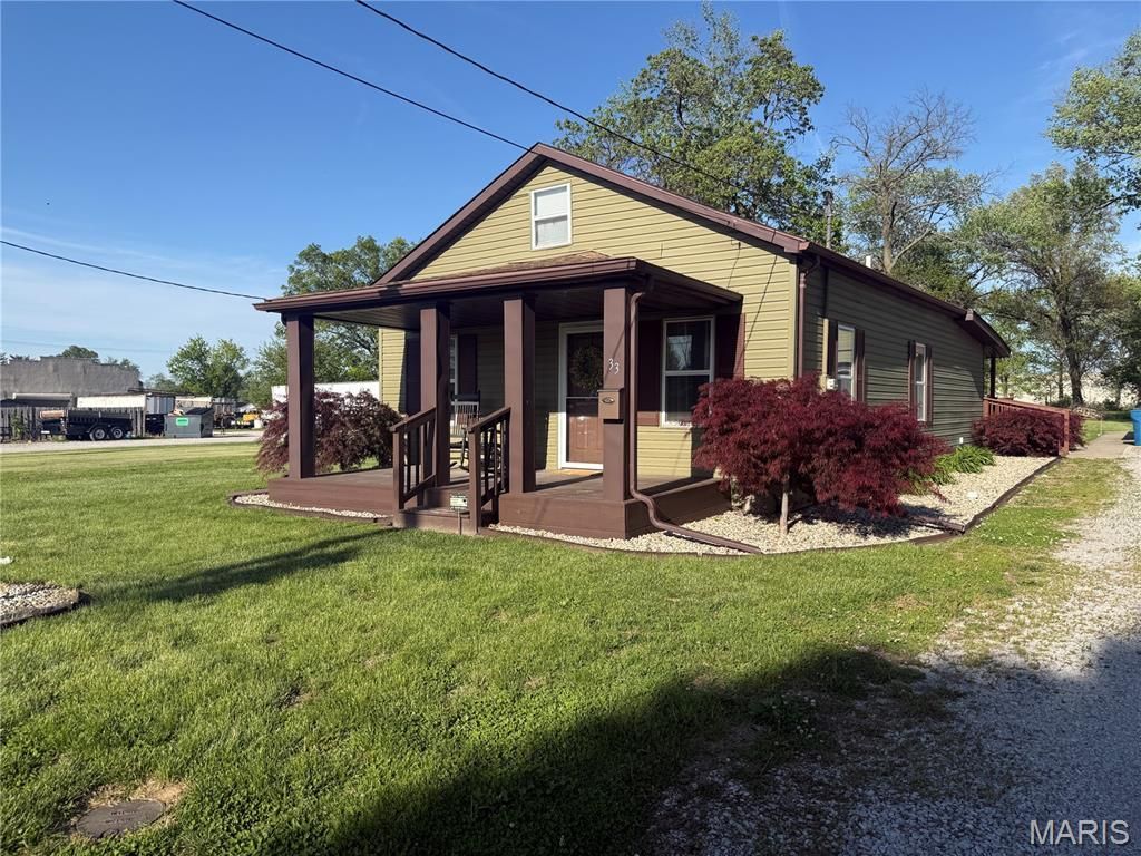 Updated home located in a great location!! Near all amenities in Bethalto IL. This home has great curb appeal, very nicely landscaped with a covered front porch and spacious back deck. The detached garage features a small bar, workshop area and half bath! There have been numerous recent updates. New main water line, plumbing, updated electric, water heater, basement waterproofing and siding in 2024. All of the flooring was updated at the end of 2025 and in 2026 the home was completely repainted inside and new light fixtures were installed. This home is truly move in ready and wont last long!!!