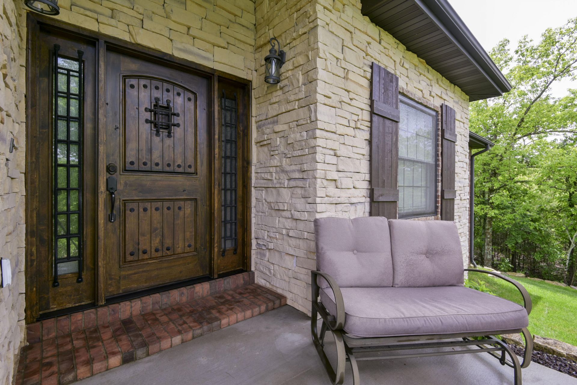 Craftsmanship and Location creates an Ideal Lifestyle at StoneBridge Village, minutes from Table Rock Lake and Branson, Missouri. Price Reduced to Below Appraisal. This custom home was built with ease of living on one level. The feeling of space from the large Foyer through the open living with fireplace and kitchen with bar area and built-in desk to the back covered patio for Ozark Living. The butler's pantry and pantry pass thru from kitchen to dining area just adds to the joy of entertaining and gatherings. There's a Bonus Room off the Great Room perfect for Office, Exercise or 4th bedroom. The design separation of the 2 spacious secondary bedrooms and full bath from the owners' suite truly gives a sense of privacy. The Master bath features large double vanity with separate walk in shower and jetted tub, with direct access to large closet. The Laundry and Mudroom is close by coming from the Garage area. The separation of the large single garage from the standard 2 car garage creates space for golf cart, toys or work space. The lawn is fully sprinklered and easy to maintain. If looking for storage or storm room, access in Bedroom two closet to dry and lots of space with head room. The driveway has extra parking space also.The front porch overlooks the hillsides and natural beauty, while the covered back deck is private, yet on the Number 12 tee box of the legendary LedgeStone Golf Course. The exterior design and all brick exterior is very attractive. Don't miss the floor access in StoneBridge Village is an active community from all the amenities at and around the Clubhouse and green spaces throughout the Village and with a full schedule of Social Events. Truly a Home in a location you must experience. Most Furniture available in asking price.
